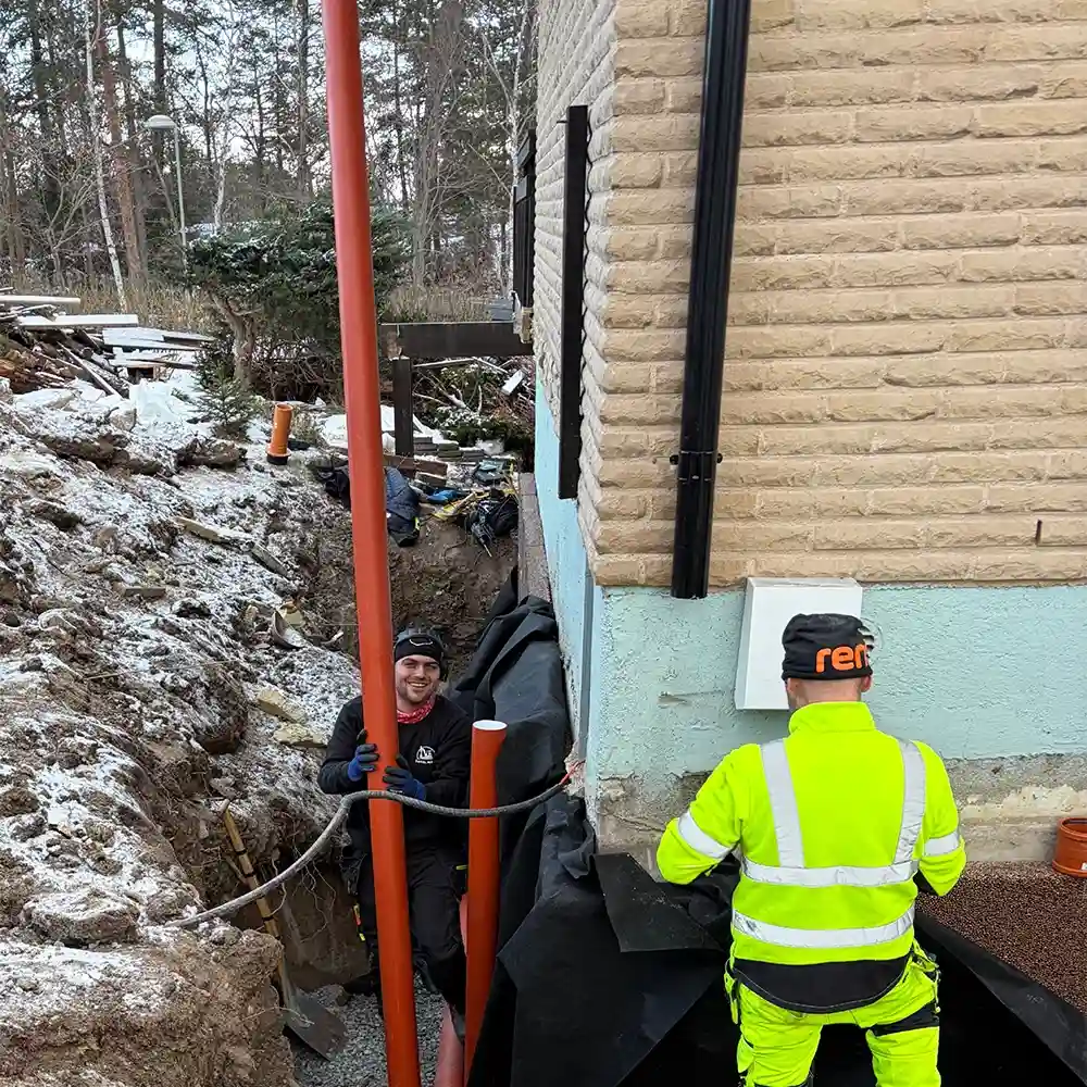 Vi hjälper villaägare, fastighetsägare och bostadsrättsföreningar med dagvatten- och VA-arbeten på Lidingö. Arbetet omfattar allt från installation av nya dagvattenledningar till byte av äldre rörsystem och anslutning till kommunalt VA-nät.