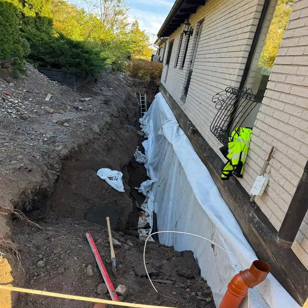 En korrekt utförd dränering leder bort vatten från husgrunden och minskar risken för fukt, mögel och skador på byggnaden.